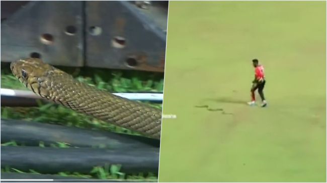 LPL 2023: श्रीलंका में दिन दिनों लंका प्रीमियर लीग 2023 का आयोजन चल रहा है। इस लीग के 15वें मुकाबले में कुछ ऐसा हुआ, जिसने सभी के होश उड़ा दिए। 12 अगस्त को कोलंबा के आर प्रेमदासा स्टेडियम में जाफना किंग्स बनाम बी-लव कैंडी की टीमें आमने-सामने थीं। मैच में जाफना किंग्स 179 रनों के टारगेट का पीछा कर रही थी, तभी क्रिकेट ग्राउंड में सांप की एंट्री हुई तो दहशत का माहौल बन गया।