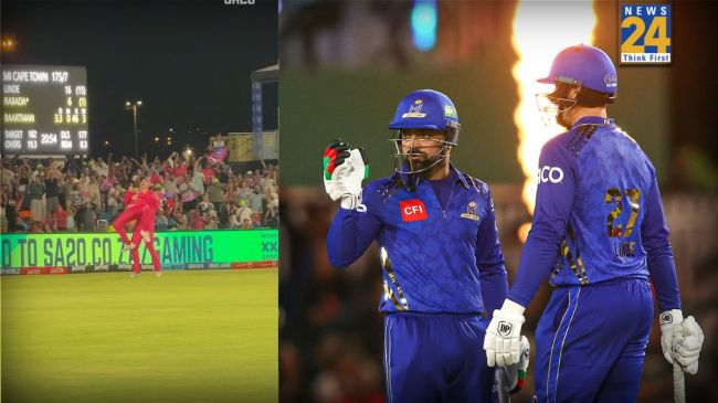कप्तान राशिद खान और जॉर्ज लिंडे के बीच साझेदारी हुई और मैच आखिरी ओवर तक गया. MI को जीत के लिए आखिरी ओवर में 15 रन की जरूरत थी. दूसरी गेंद पर राशिद खान शॉट लगाने के चक्कर में कैचआउट हो गए. एक छक्का लगाकर रबाडा भी आउट हो गए. आखिरी गेंद पर टीम को 6 रन की जरूरत थी और जॉर्ज लिंडे बल्लेबाजी कर रहे थे. ऑटनील बार्टमैन की गेंद पर लिंडे ने शॉट लगाया और गेंद बाउंड्री से ठीक पहले गिर गई. इसी के चलते चौका चला गया और पार्ल रॉयल्स ने 1 रन से मैच अपने नाम कर लिया. अगर शॉट में थोड़ा दम और होता, तो MI ये मैच जीत जाती.