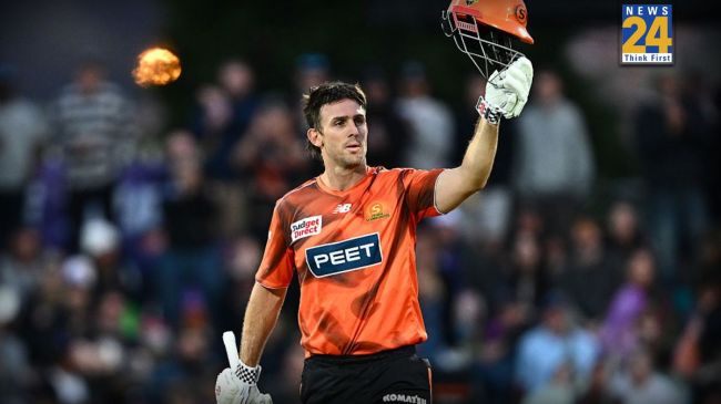 Mitchell Marsh Century: टी-20 वर्ल्ड कप 2026 से पहले मिचेल मार्श गजब की फॉर्म में लौट चुके हैं. बिग बैश लीग में मार्श ने अपनी तूफानी बल्लेबाजी से जमकर महफिल लूटी है. पर्थ स्कॉचर्स की ओर से खेलते हुए मार्श ने ताबड़तोड़ अंदाज में बैटिंग करते हुए सिर्फ 55 गेंदों में शतक जमाया.