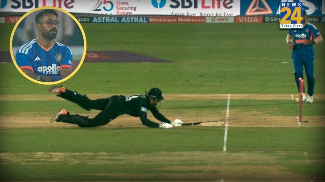 Mitchell Santner Run Out On Hardik Pandya Direct Hit: भारत और न्यूजीलैंड के बीच चौथे टी-20 इंटरनेशनल मुकाबले में एक रोमांचक पल तब आया जब, मैदान और टेलीविजन पर मैच देख रहे दर्शकों को हार्दिक पांड्या की शानदार फील्डिंग देखने को मिली. ये ऐसा मैच मोमेंट था, जो हर किसी के जेहन में कैद हो गया.