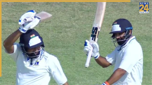 Mohammed Shami Fifty: рд░рдгрдЬреА рдЯреНрд░реЙрдлреА рдХреЗ рд░рдг рдореЗрдВ рдореЛрд╣рдореНрдордж рд╢рдореА рдиреЗ рдмрд▓реНрд▓реЗ рд╕реЗ рдХреЛрд╣рд░рд╛рдо рдордЪрд╛ рдбрд╛рд▓рд╛ рд╣реИ. рдЖрдВрдзреНрд░ рдкреНрд░рджреЗрд╢ рдХреЗ рдЦрд┐рд▓рд╛рдл рдЦреЗрд▓реЗ рдЬрд╛ рд░рд╣реЗ рдХреНрд╡рд╛рд▓рд┐рдлрд╛рдпрд░ рдореБрдХрд╛рдмрд▓реЗ рдореЗрдВ рд╢рдореА рдЧреЗрдВрдж рд╕реЗ рддреЛ рдХреБрдЫ рдЦрд╛рд╕ рдХрдорд╛рд▓ рдирд╣реАрдВ рджрд┐рдЦрд╛ рд╕рдХреЗ, рд▓реЗрдХрд┐рди рдЙрдиреНрд╣реЛрдВрдиреЗ рддреВрдлрд╛рдиреА рдмреИрдЯрд┐рдВрдЧ рд╕реЗ рдЬрдордХрд░ рдорд╣рдлрд┐рд▓ рд▓реВрдЯреА. рд╢рдореА рдиреЗ рд╢рд╛рдирджрд╛рд░ рдмреИрдЯрд┐рдВрдЧ рдХрд░рддреЗ рд╣реБрдП рдорд╣рдЬ 30 рдЧреЗрдВрджреЛрдВ рдореЗрдВ рдЕрд░реНрдзрд╢рддрдХ рдЬрдорд╛рдпрд╛. рд╢рдореА рдХреЗ рдЖрдЧреЗ рд╡рд┐рдкрдХреНрд╖реА рдЯреАрдо рдХреЗ рдЧреЗрдВрджрдмрд╛рдЬ рдкреВрд░реА рддрд░рд╣ рд╕реЗ рдмреЗрдмрд╕ рдирдЬрд░ рдЖрдП рдФрд░ рдЙрдиреНрд╣реЛрдВрдиреЗ 160 рдХреЗ рд╕реНрдЯреНрд░рд╛рдЗрдХ рд░реЗрдЯ рд╕реЗ рдЦреЗрд▓рддреЗ рд╣реБрдП 7 рдЪреМрдХреЗ рдФрд░ 3 рдЧрдЧрдирдЪреБрдВрдмреА рд╕рд┐рдХреНрд╕ рдЬрдорд╛рдП.