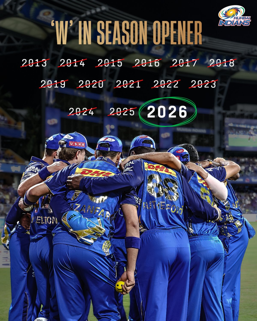 Mumbai Indians Breaks Opening Match Jinx: рдореБрдВрдмрдИ рдЗрдВрдбрд┐рдпрдВрд╕ рдиреЗ 29 рдорд╛рд░реНрдЪ рдХреЛ рдРрддрд┐рд╣рд╛рд╕рд┐рдХ рд╡рд╛рдирдЦреЗрдбрд╝реЗ рд╕реНрдЯреЗрдбрд┐рдпрдо рдореЗрдВ рдХреЛрд▓рдХрд╛рддрд╛ рдирд╛рдЗрдЯ рд░рд╛рдЗрдбрд░реНрд╕ рдХреЗ рдЦрд┐рд▓рд╛рдл 6 рд╡рд┐рдХреЗрдЯ рд╕реЗ рдЬреАрдд рдХреЗ рд╕рд╛рде рдЕрдкрдирд╛ рдЖрдИрдкреАрдПрд▓ 2026 рдХреИрдВрдкреЗрди рд╢реБрд░реВ рдХрд┐рдпрд╛. рдПрдордЖрдИ рдХреЛ рдЬреАрддрддреЗ рд╣реБрдП рджреЗрдЦрдирд╛ рдХреЛ рдЕрдЪрдВрднреЗ рдХреА рдмрд╛рдд рдирд╣реАрдВ рд╣реИ, рд▓реЗрдХрд┐рди рдмреАрддреЗ рд░рд╡рд┐рд╡рд╛рд░ рдХреЛ рдХреБрдЫ рдРрд╕рд╛ рд╣реБрдЖ рдЬреЛ рдкрд┐рдЫрд▓реЗ 13 рд╕рд╛рд▓ рдореЗрдВ рдХрднреА рднреА рдПрдХреНрд╕рдкреАрд░рд┐рдПрдВрд╕ рдХрд░рдиреЗ рдХреЛ рдирд╣реАрдВ рдорд┐рд▓рд╛ рдерд╛.