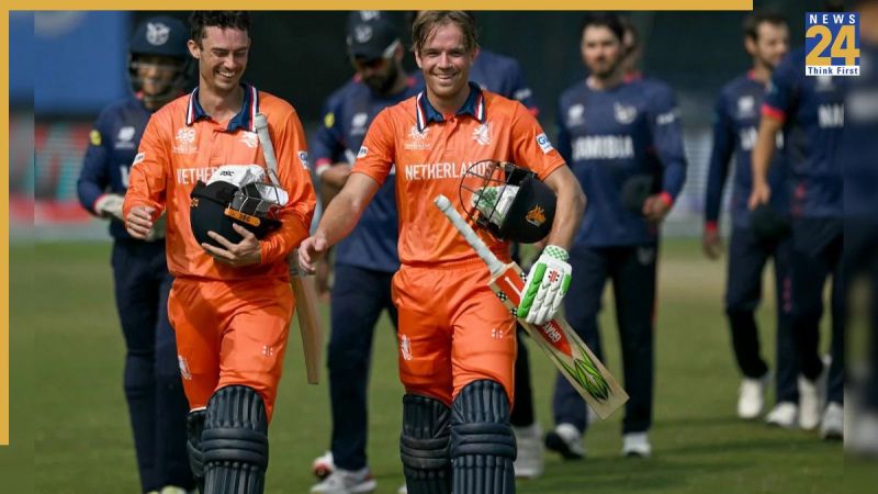 NED vs NAM T20 WC 2026: рдЯреА-20 рд╡рд░реНрд▓реНрдб рдХрдк 2026 рдореЗрдВ рдиреАрджрд░рд▓реИрдВрдбреНрд╕ рдиреЗ рдкрд╣рд▓реА рдЬреАрдд рдХрд╛ рд╕реНрд╡рд╛рдж рдЪрдЦ рд▓рд┐рдпрд╛ рд╣реИ. рдЯреВрд░реНрдирд╛рдореЗрдВрдЯ рдХреЗ 10рд╡реЗрдВ рдореИрдЪ рдореЗрдВ рдЯреАрдо рдиреЗ рдмреЗрд╣рддрд░реАрди рдкреНрд░рджрд░реНрд╢рди рдХрд░рддреЗ рд╣реБрдП рдирд╛рдореАрдмрд┐рдпрд╛ рдХреЛ 7 рд╡рд┐рдХреЗрдЯ рд╕реЗ рдзреВрд▓ рдЪрдЯрд╛рдИ. рдирд╛рдореАрдмрд┐рдпрд╛ рд╕реЗ рдорд┐рд▓реЗ 157 рд░рдиреЛрдВ рдХреЗ рд▓рдХреНрд╖реНрдп рдХреЛ рдиреАрджрд░рд▓реИрдВрдбреНрд╕ рдиреЗ рд╕рд┐рд░реНрдл 3 рд╡рд┐рдХреЗрдЯ рдЦреЛрдХрд░ 18 рдУрд╡рд░ рдореЗрдВ рд╣рд╛рд╕рд┐рд▓ рдХрд░ рд▓рд┐рдпрд╛. рдЯреАрдо рдХреА рдУрд░ рд╕реЗ рдмрд╛рд╕ рдбреА рд▓реАрдбреЗ рдиреЗ рд╢рд╛рдирджрд╛рд░ рдмрд▓реНрд▓реЗрдмрд╛рдЬреА рдХрд░рддреЗ рд╣реБрдП 48 рдЧреЗрдВрджреЛрдВ рдореЗрдВ 72 рд░рдиреЛрдВ рдХреА рддреВрдлрд╛рдиреА рдкрд╛рд░реА рдЦреЗрд▓реА. рдЕрдкрдиреА рдЗрд╕ рдЗрдирд┐рдВрдЧ рдХреЗ рджреМрд░рд╛рди рдЙрдиреНрд╣реЛрдВрдиреЗ 5 рдЪреМрдХреЗ рдФрд░ 4 рдЧрдЧрдирдЪреБрдВрдмреА рд╕рд┐рдХреНрд╕.