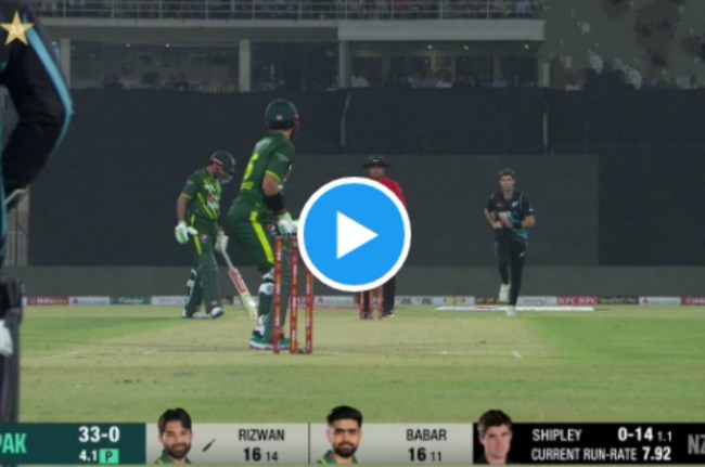 नई दिल्ली: पाकिस्तान-न्यूजीलैंड के बीच खेली जा रही टी-20 सीरीज में दिलचस्प नजारे सामने आ रहे हैं। शनिवार को दूसरे लाहौर के गद्दाफी स्टेडियम में खेले गए मुकाबले में पिछले मैच में फेल रहे ओपनर मोहम्मद रिजवान और बाबर आजम ने ताबड़तोड़ शुरुआत की। रिजवान ने आते ही बल्ले का मुंह खोला और चौके-छक्के कूटना शुरू कर दिया। उन्होंने बाबर आजम के साथ मिलकर पहले विकेट के लिए 10.4 ओवर में 99 रन की मजबूत साझेदारी की। इस दौरान उन्होंने हेनरी शिप्ले की गेंद पर इतना करारा छक्का ठोका कि क्रिकेटप्रेमी दंग रह गए।