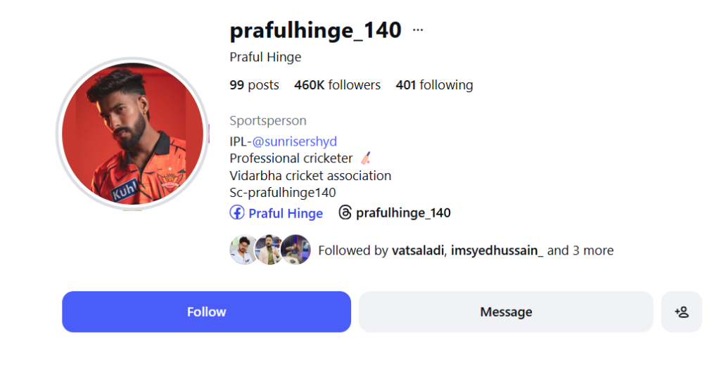 आईपीएल मैच से पहले प्रफुल्ल हिंगे के इंस्टाग्राम पर लगभग 3,000 फॉलोअर्स थे, जो बाद में 4 लाख 60 हजार से अधिक हो गए।
