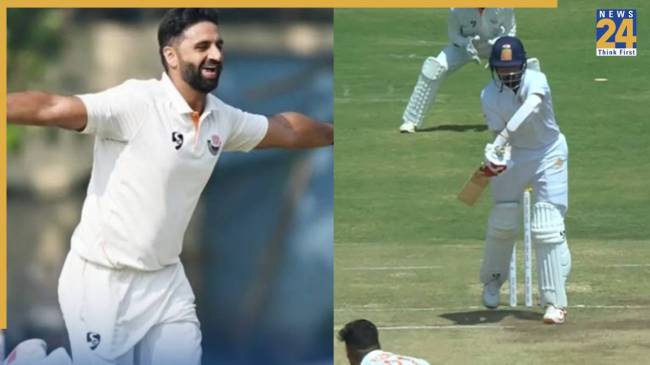 Ranji Trophy 2025-26: भारत में घरेलू टूर्नामेंट रणजी ट्रॉफी का फाइनल खेला जा रहा है. जम्मू कश्मीर और कर्नाटक के बीच ये कांटे का मुकाबला खेला जा रहा है. इस मैच में एक बार फिर से जम्मू कश्मीर के तेज गेंदबाज आकिब नबी का कहर देखने को मिला. उन्होंने अपनी स्विंग गेंदबाजी के दम पर कर्नाटक के बल्लेबाजों की नाक में दम कर दिया. कर्नाटक के सीनियर बल्लेबाज केएल राहुल से टीम को इस मैच में बड़ी उम्मीदें थीं लेकिन वो पहली पारी में बुरी तरह से फ्लॉप रहे. तेज गेंदबाज आकिब नबी की जादुई गेंद के आगे वो पूरी तरह से पस्त नजर आए और अपना विकेट गंवाया. इसका वीडियो सोशल मीडिया पर वायरल हो रहा है.