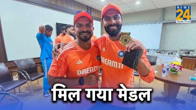 рдпрд╣реА рдирд╣реАрдВ рдЙрдиреНрд╣реЛрдВрдиреЗ рдХреНрд╖реЗрддреНрд░рд░рдХреНрд╖рдг рдХреЗ рджреМрд░рд╛рди рдореИрдЪ рдХрд╛ рд░реБрдЦ рдмрджрд▓ рджреЗрдиреЗ рд╡рд╛рд▓рд╛ рдХреИрдЪ рд▓рдкрдХрд╛ред рдЬрд┐рд╕рдХреЗ рдмрд╛рдж рд╡рд╣рд╛рдВ рдЙрдкрд╕реНрдерд┐рдд рд╣рд░ рдХреЛрдИ рд╣реИрд░рд╛рди рд╣реЛ рдЧрдпрд╛ рдерд╛ред рдЬрдбреЗрдЬрд╛ рдХреЛ рдХреИрдЪ рдкрдХреЬрдиреЗ рдХреЗ рдмрд╛рдж рдбреНрд░реЗрд╕рд┐рдВрдЧ рд░реВрдо рдХреА рддрд░рдл рдореЗрдбрд▓ рдХреА рдорд╛рдВрдЧ рдХрд░рддреЗ рд╣реБрдП рджреЗрдЦрд╛ рдЧрдпрд╛ рдерд╛ред рдореИрдЪ рдЦрддреНрдо рд╣реЛрдиреЗ рдХреЗ рдмрд╛рдж рдЕрдм рдЙрдирдХрд╛ рдпрд╣ рд╕рдкрдирд╛ рдкреВрд░рд╛ рд╣реЛ рдЧрдпрд╛ рд╣реИред рдмреАрд╕реАрд╕реАрдЖрдИ рдиреЗ рдПрдХ рд╡реАрдбрд┐рдпреЛ рд╕рд╛рдЭрд╛ рдХрд┐рдпрд╛ рд╣реИред рдЗрд╕ рд╡реАрдбрд┐рдпреЛ рдореЗрдВ рд╕рднреА рдЦрд┐рд▓рд╛реЬреА рдПрдХ рд╕рд╛рде рдирдЬрд░ рдЖ рд░рд╣реЗ рд╣реИрдВред