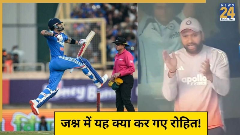 рджрд░рдЕрд╕рд▓, рд╕реЛрд╢рд▓ рдореАрдбрд┐рдпрд╛ рдкрд░ рдПрдХ рд╡реАрдбрд┐рдпреЛ рдЕрдЪрд╛рдирдХ рдЫрд╛ рдЧрдпрд╛ рд╣реИ. рд░реЛрд╣рд┐рдд рдФрд░ рдмрд╛рдХреА рдкреНрд▓реЗрдпрд░реНрд╕ рдХреЛрд╣рд▓реА рдХреА рд╕реЗрдВрдЪреБрд░реА рдХрд╛ рд╡реЗрдЯ рдХрд░рддреЗ рд╣реБрдП рджрд┐рдЦ рд░рд╣реЗ рд╣реИрдВ. рд╡рд┐рд░рд╛рдЯ рдЬреИрд╕реЗ рд╣реА рд╕реЗрдВрдЪреБрд░реА рдкреВрд░реА рдХрд░рддреЗ рд╣реИрдВ рд╡реИрд╕реЗ рд╣реА рд░реЛрд╣рд┐рдд-рдЕрд░реНрд╢рджреАрдк рд╕рдореЗрдд рд╕рднреА рдкреНрд▓реЗрдпрд░реНрд╕ рдЦрдбрд╝реЗ рд╣реЛрдХрд░ рдЙрдирдХреЗ рд▓рд┐рдП рддрд╛рд▓рд┐рдпрд╛рдВ рдмрдЬрд╛рддреЗ рд╣реБрдП рджрд┐рдЦ рд░рд╣реЗ рд╣реИрдВ. рдХреЛрд╣рд▓реА рдХреА рд╕реЗрдВрдЪреБрд░реА рдХреЛ рд╕реЗрд▓рд┐рдмреНрд░реЗрдЯ рдХрд░рддреЗ рд╣реБрдП рд░реЛрд╣рд┐рдд рдХреБрдЫ рдЕрдкрд╢рдмреНрдж рдХрд╣ рдмреИрдарддреЗ рд╣реИрдВ, рдЬреЛ рдЧрд▓рддреА рд╕реЗ рдХреИрдорд░реЗ рдореЗрдВ рдХреИрдж рд╣реЛ рдЧрдпрд╛. рдХреЛрд╣рд▓реА рд╢реБрд░реБрдЖрдд рд╕реЗ рд╣реА рдЧрдЬрдм рдХреА рд▓рдп рдореЗрдВ рджрд┐рдЦрд╛рдИ рджрд┐рдП рдФрд░ рд╡рд┐рд░рд╛рдЯ рдиреЗ рдПрдХ рдХреЗ рдмрд╛рдж рдПрдХ рдХрдорд╛рд▓ рдХреЗ рд╢реЙрдЯреНрд╕ рд▓рдЧрд╛рдП.