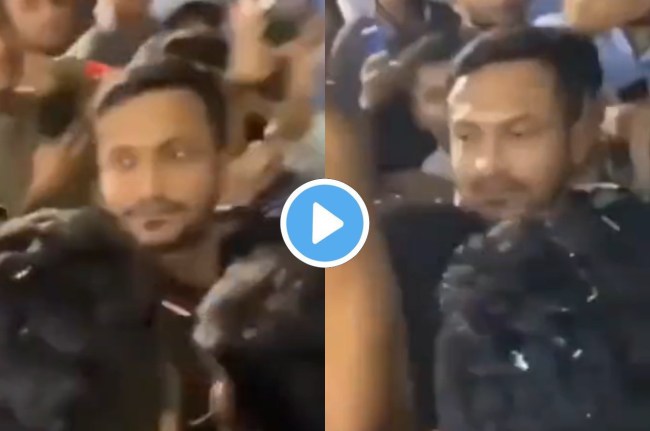 рд╡реАрдбрд┐рдпреЛ рдореЗрдВ рджреЗрдЦрд╛ рдЬрд╛ рд╕рдХрддрд╛ рд╣реИ рдХрд┐ рд╢рд╛рдХрд┐рдм рдЕрд▓ рд╣рд╕рди рдлреИрдВрд╕ рд╕реЗ рдШрд┐рд░реЗ рд╣реИрдВ, рдЕрдЪрд╛рдирдХ рднреАрдбрд╝ рдореЗрдВ рд╕реЗ рдХреБрдЫ рд▓реЛрдЧ рдЙрдирдХреЗ рдФрд░ рд╕рд╛рдерд┐рдпреЛрдВ рдХреЗ рд╕рд╛рде рдзрдХреНрдХрд╛-рдореБрдХреНрдХреА рд╢реБрд░реВ рдХрд░ рджреЗрддреЗ рд╣реИрдВред рдлреИрдВрд╕ рдХреЛ рдРрд╕рд╛ рдХрд░рддреЗ рджреЗрдЦ рд╢рд╛рдХрд┐рдм рдмреБрд░реА рддрд░рд╣ рднрдбрд╝рдХ рдЬрд╛рддреЗ рд╣реИрдВред рд╡рд╣ рдЕрдкрдиреА рдХреИрдк рдЙрддрд╛рд░рддреЗ рд╣реИрдВ рдФрд░ рдлреИрди рдХреЗ рд╕рд┐рд░ рдкрд░ рджреЗ-рджрдирд╛рджрди рдорд╛рд░рдирд╛ рд╢реБрд░реВ рдХрд░ рджреЗрддреЗ рд╣реИрдВред рд╢рд╛рдХрд┐рдм рдХреЛ рдлреИрди рдХреА рдХреБрдЯрд╛рдИ рдХрд░рддреЗ рджреЗрдЦ рд▓реЛрдЧ рджрдВрдЧ рд░рд╣ рдЬрд╛рддреЗ рд╣реИрдВред рдЙрдирдХрд╛ рдпреЗ рд╡реАрдбрд┐рдпреЛ рддреЗрдЬреА рд╕реЗ рд╡рд╛рдпрд░рд▓ рд╣реЛ рд░рд╣рд╛ рд╣реИред