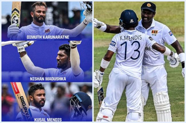 श्रीलंका के लिए 2 बल्लेबाजों निशान मदुष्का 205 और कुसल मेंडिस ने 245 दोहरे शतक बनाए। कप्तान दिमुथ करुणारत्ने ने 115 रन की पारी खेली। फिर चौथे नंबर पर बैटिंग करने उतरे एंजलो मैथ्यू ने 100 रन बनाए।