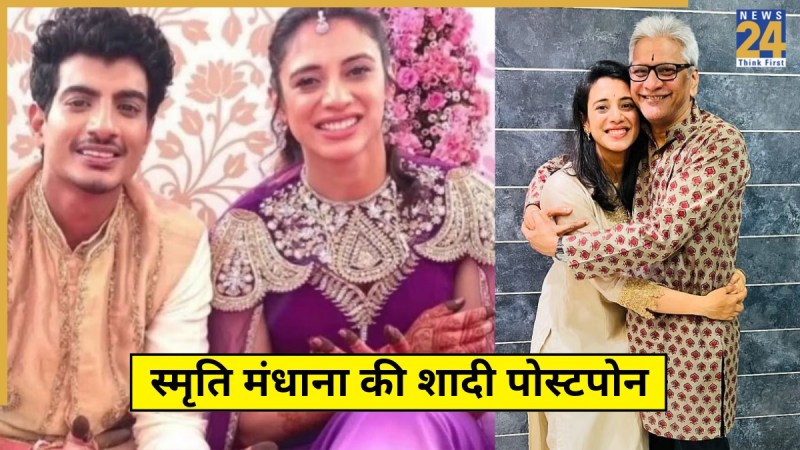 Smriti Mandhana Wedding Postponed: टीम इंडिया की स्टार बल्लेबाज स्मृति मंधाना और पलाश मुच्छल की शादी पोस्टपोन हो गई है. दरअसल, स्मृति के पिता की अचानक तबीयत बिगड़ गई है और उन्हें अस्पताल में भर्ती कराना पड़ा है. इसी कारण मंधाना ने शादी को अभी टालने का फैसला किया है. स्मृति के मैनेजर तुहिन मिश्रा ने पीटीआई के साथ बातचीत करते हुए पिता की तबीयत खराब होने की पुष्टि की है.