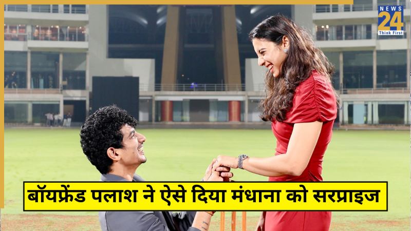 पलाश मुच्छल ने अपने इंस्टाग्राम अकाउंट पर वीडियो डाला. इसमें वो स्मृति मंधाना की आंख पर पट्टी बांधकर उन्हें डीवाई पाटिल स्टेडियम में ले गए. उन्होंने मैदान के बीच स्मृति की आंखों पर बंधी पट्टी हटाई और घुटने पर बैठकर प्रपोज किया. स्मृति ने अंगूठी पहनी और फिर दोनों ने एक-दूसरे को गले लगाया. मंधाना और पलाश भावुक नजर आए. इस वीडियो को फैंस द्वारा खूब प्यार मिल रहा है. सभी उन्हें सगाई की बधाई दे रहे हैं.