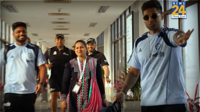 ईशान किशन अपने अच्छे फॉर्म का लुत्फ उठा रहे हैं, ऐसे में T20 वर्ल्ड कप 2026 में सैमसन की जगह पर सवाल उठने लगे हैं. हालांकि गुरुवार 29 जनवरी को टीम इंडिया के खिलाड़ी एयरपोर्ट पर लाइट मूड में दिखाई दिए. एक वीडियो में जो सोशल मीडिया पर वायरल हो रहा है, सूर्यकुमार को मजाक में कहते सुना गया – ‘प्लीज रास्ता दीजिए, चेट्टा (मलयालम में बड़े भाई) को परेशान न करें.’ कप्तान सूर्या का ये अंदाज देखकर सैमसन भी खुद को मुस्कुराने से रोक नहीं पाए.