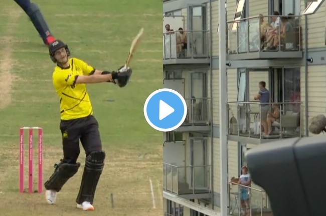 David Payne nails a six which is then CAUGHT by a spectator on the balcony ЁЯдп#Blast23 pic.twitter.com/BHZsSJYPA0