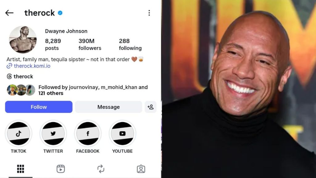 रेस्लिंग किंग से सिल्वर स्क्रीन के स्टार बने ड्वेन जॉनसन को ‘द रॉक’ के नाम से ज्यादा पहचाना जाता है. भारत समेत दुनियाभर में इनके फैंस की तादाद करोड़ों में ही. वो इंस्टाग्राम पर सबसे ज्यादा फॉलो किए जाने वाले खिलाड़ियों की लिस्ट में तीसरे नंबर पर हैं, उनके फॉलोअर्स की संख्या 390 मिलियन (39 करोड़) से ज्यादा फॉलोअर्स हैं.