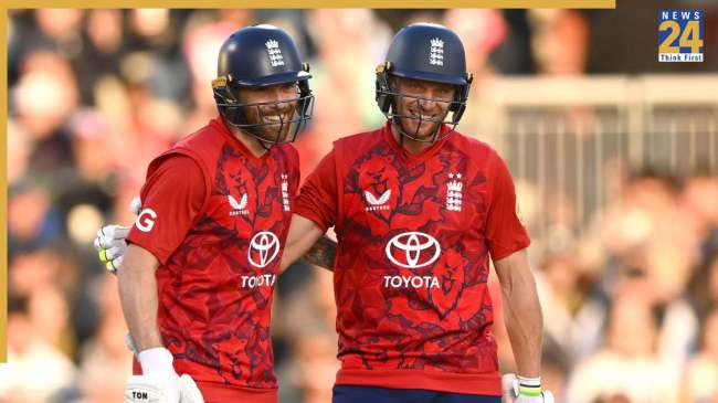 Top 5 Fastest Centurions For England in T20I: इंग्लिश टीम ने पिछले कुछ सालों में वाइट बॉल क्रिकेट को अलग अंदाज में खेलने का फैसला किया है। वाइट बॉल क्रिकेट में उन्हें इसका फायदा भी मिला। जिसके कारण ही उन्होंने 2 आईसीसी ट्रॉफी भी जीती। इस दौरान टी20 फॉर्मेट में पहली ही गेंद से आक्रामक क्रिकेट खेलने वाले बल्लेबाज सामने आए हैं। जिसके कारण ही इंग्लैंड के लिए सबसे तेज 5 टी20आई शतक बनाने वाले बल्लेबाजों के नाम फैंस जानना चाहते हैं।