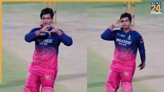 15 साल के वैभव सूर्यवंशी ने राजस्थान रॉयल्स की पारी के 14वें ओवर में ये माइलस्टोन हासिल किया. साकिब ने ऑफ स्टंप के बाहर फुल-लेंथ गेंद फेंकी, और सूर्यवंशी ने अपनी क्रीज के अंदर खड़े होकर उसे लॉन्ग-ऑन के ऊपर से छक्के के लिए उड़ा दिया. शतक पूरा करने के बाद, उन्होंने अपने ग्लव्स और हेलमेट उतारे, फिर दिल वाला इमोजी बनाया और डगआउट की ओर सैल्यूट किया. हालांकि अगली ही गेंद पर साकिब ने उन्हें एलबीडब्ल्यू आउट कर दिया.