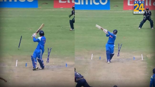 अमेरिका के खिलाफ टूर्नामेंट के पहले मैच में वैभव सूर्यवंशी सस्ते में पवेलियन लौटे. शुरुआती तीन गेंदों में 2 रन बनाने के बाद चौथी बॉल पर वैभव ने बड़ा शॉट खेलने का प्रयास किया, लेकिन वह बॉल की लाइन को पूरी तरह से मिस कर गए और गेंद उनका मिडिल स्टंप ले उड़ी.