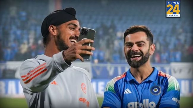 Virat Kohli Mimics Arshdeep Singh: इंडियन बैटिंग स्टार विराट कोहली नेशनल कैंप में एक रिलैक्ड और खुशमिजाज मूड में लौटे, जब भारत ने न्यूज़ीलैंड के खिलाफ वनडे सीरीज की तैयारियां शुरू कीं. वडोदरा में ट्रेनिंग कैंप के दौरान, कोहली को अपने टीममेट्स के साथ हल्के-फुल्के पल का लुत्फ उठाते दिखे. इसके कारण सीरीज के ओपनिंग मैच से पहले टीम माहौल खुशनुमा बन गया.
