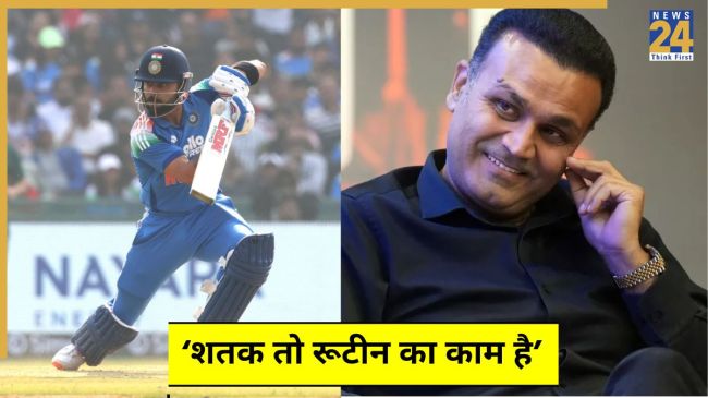 कोहली ने 93 गेंदों का सामना करते हुए 102 रनों की धमाकेदार पारी खेली. अपनी इस इनिंग के दौरान विराट ने 7 चौके और 2 गगनचुंबी सिक्स जमाए. कोहली के बल्ले से निकली एक और धांसू पारी पर वीरेंद्र सहवाग का रिएक्शन जमकर वायरल हो रहा है. वीरू ने कहा कि विराट के लिए सेंचुरी लगाना कोई रूटीन काम जैसा है.