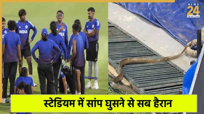 Snake slithers in during India women’s training in Colombo: इन दिनों श्रीलंका और भारत की सरजमीं पर एक साथ महिला वनडे विश्व कप 2025 खेला जा रहा है. 30 सितंबर से शुरू हुए इस टूर्नामेंट में अब तक 4 मैच हो चुके हैं. टीम इंडिया पहला मैच जीत चुकी है, अब उसे अगले मैच में पाकिस्तान से भिड़ना है. यह मुकाबला कोलंबो में खेला जाना है. इसके लिए दोनों टीमें वहां पहुंच चुकी हैं और जमकर प्रैक्टिस कर रही हैं. इस मुकाबले से पहले कुछ ऐसा हुआ, जिसने सभी को हैरान कर दिया. जब भारतीय खिलाड़ी प्रैक्टिस कर रही थीं तभी वहां सांप ने एंट्री मारी तो सभी चौंक गए.