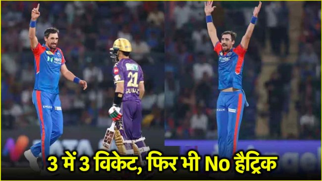 Mitchell Starc DC vs KKR: कोलकाता नाइट राइडर्स ने दिल्ली कैपिटल्स को एकतरफा मुकाबले में 14 रनों से हराया। केकेआर से मिले 205 रनों के लक्ष्य का पीछा करते हुए दिल्ली के दबंग 190 रन ही बना सके। मैच में केकेआर की पारी के आखिरी ओवर में मिचेल स्टार्क ने कमाल की गेंदबाजी की। स्टार्क के इस ओवर में लगातार तीन गेंदों पर 3 विकेट गिरे। दिल्ली के फास्ट बॉलर ने ओवर की तीसरी गेंद पर रोवमैन पॉवेल को पवेलियन की राह दिखाई, तो चौथी गेंद पर अनुकूल रॉय को आउट किया। वहीं, पांचवीं गेंद पर आंद्रे रसेल चलते बने। हालांकि, इसके बावजूद स्टार्क की हैट्रिक पूरी नहीं हो सकी।