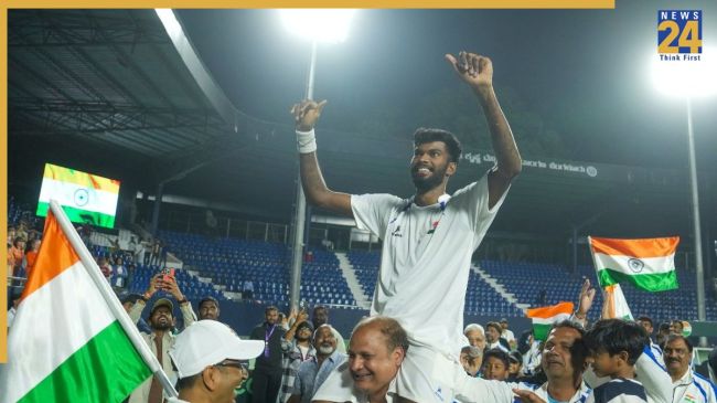 Davis Cup 2026: डेविस कप के क्वालिफायर मुकाबले में भारत ने बड़ा उलटफेर कर डाला है. भारत ने दमदार प्रदर्शन करते हुए नीदरलैंड्स के खिलाफ धमाकेदार जीत दर्ज की है. इस जीत के साथ ही भारत ने अगले दौर में अपनी जगह भी बना ली है. कॉलेज स्टूडेंट दक्षिनेश्वर सुरेश ने नीदरलैंड्स के खिलाफ दमदार खेल दिखाया.