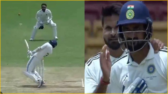 Duleep Trophy 2024: दलीप ट्रॉफी 2024 में इस बार टीम इंडिया के कई स्टार्स खिलाड़ी खेलते हुए नजर आ रहे हैं। इस टूर्नामेंट में अच्छा करके खिलाड़ी बांग्लादेश के खिलाफ होने वाले टेस्ट सीरीज से पहले अपनी दावेदारी पेश करना चाहते हैं। दलीप ट्रॉफी 2024 में भारत ए का मैच भारत बी से चल रहा है। इस मैच में यशस्वी जयसवाल, मुशीर खान, आकाश दीप जैसे सितारे नजर आ रहे हैं। जबकि मुकेश कुमार, शुभमन गिल, कुलदीप यादव एक दूसरे के खिलाफ खेल रहे हैं। इस मैच में मुकेश कुमार की गेंद पर आकाशदीप चोटिल होने से बच गए हैं।