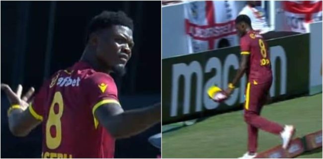 рдпрд╣рд╛рдВ рдЙрдиреНрд╣реЛрдВрдиреЗ рдЧреЗрдВрджрдмрд╛рдЬреА рдЬрд╛рд░реА рд░рдЦреА рдФрд░ рддреАрд╕рд░реА рдЧреЗрдВрдж рдкрд░ рдЗрдВрдЧреНрд▓рд┐рд╢ рдмрд▓реНрд▓реЗрдмрд╛рдЬ рдЬреЙрд░реНрдбрди рдХреЙрдХреНрд╕ рдХреЛ рдХреИрдЪ рдЖрдЙрдЯ рдХрд░рд╛рдпрд╛ред рдХреЙрдХреНрд╕ рдХреЛ рдЖрдЙрдЯ рдХрд░рдиреЗ рдХреЗ рдмрд╛рдж рднреА рдХрдкреНрддрд╛рди рдФрд░ рдЬреЛрд╕реЗрдл рдХреЗ рдмреАрдЪ рдХрд╣рд╛рд╕реБрдиреА рд╣реЛрддреА рд░рд╣реА, рдЬрд┐рд╕рдХреЗ рдмрд╛рдж рддреЗрдЬ рдЧреЗрдВрджрдмрд╛рдЬ рдЧреБрд╕реНрд╕реЗ рдореЗрдВ рдореИрджрд╛рди рд╕реЗ рдмрд╛рд╣рд░ рдЪрд▓рд╛ рдЧрдпрд╛ред рдЬреЛрд╕реЗрдл рдХреЗ рдореИрджрд╛рди рд╕реЗ рдмрд╛рд╣рд░ рдЬрд╛рдиреЗ рдХреЗ рдмрд╛рдж рдЙрд╕ рд╕рдордп рдХреЛрдИ рдлреАрд▓реНрдбрд░ рдореМрдЬреВрдж рдирд╣реАрдВ рдерд╛, рдЬрд┐рд╕рдХреА рд╡рдЬрд╣ рд╕реЗ рд╡реЗрд╕реНрдЯрдЗрдВрдбреАрдЬ рдХреБрдЫ рд╕рдордп рдХреЗ рд▓рд┐рдП 10 рдлреАрд▓реНрдбрд░ рд╕рдВрдЧ рд╣реА рдЦреЗрд▓реАред рд╕реЛрд╢рд▓ рдореАрдбрд┐рдпрд╛ рдкрд░ рдпрд╣ рд╡реАрдбрд┐рдпреЛ рдХрд╛рдлреА рд╡рд╛рдпрд░рд▓ рд╣реЛ рд░рд╣рд╛ рд╣реИред