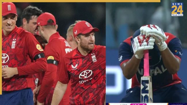 T20 World Cup 2026: टी-20 वर्ल्ड कप 2026 में मैच नंबर 5 अफगानिस्तान और नेपाल के बीच खेला गया था. मुंबई के वानखेड़े स्टेडियम में दोनों टीमों का आमना सामना हुआ. इंग्लैंड ने पहले बल्लेबाजी करते हुए बड़ा स्कोर बनाया था, जिसके जवाब में नेपाल ने भी शानदार बल्लेबाजी कर महफिल लूटी. इंग्लैंड की ओर से जैकब बेथेल और कप्तान हैरी ब्रूक ने शानदार अर्धशतक जमाया, जबकि नेपाल की ओर से लोकेश बाम ने अपनी बल्लेबाजी से सभी का दिल जीता.