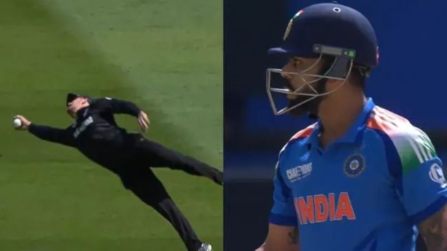 शुभमन गिल और कप्तान रोहित शर्मा के सस्ते में पवेलियन लौटने के बाद विराट कोहली श्रेयस अय्यर के साथ मिलकर भारतीय पारी को संभालने की कोशिश कर रहे थे। कोहली 11 रन बना चुके थे और हर भारतीय फैन विराट से एक और बड़ी पारी की उम्मीद कर रहा था। हालांकि, किंग कोहली सभी को निराश करके पवेलियन लौट गए। मैट हेनरी की गेंद को कोहली ने पॉइंट की तरफ शॉट खेला, लेकिन वह बॉल को नीचे नहीं रख सके। हवा में गई गेंद पर फील्डर ग्लेन फिलप्स ने जोरदार झपटा मारा और लाजवाब कैच लपका। कैच को पकड़ते वक्त फिलिप्स की पूरी बॉडी हवा में तैरती हुई दिखाई दी और उन्होंने सिर्फ एक हाथ से कैच लपक लिया। फिलिप्स की यह फुर्ती देख बल्लेबाज कोहली भी पूरी तरह से दंग रह गए।