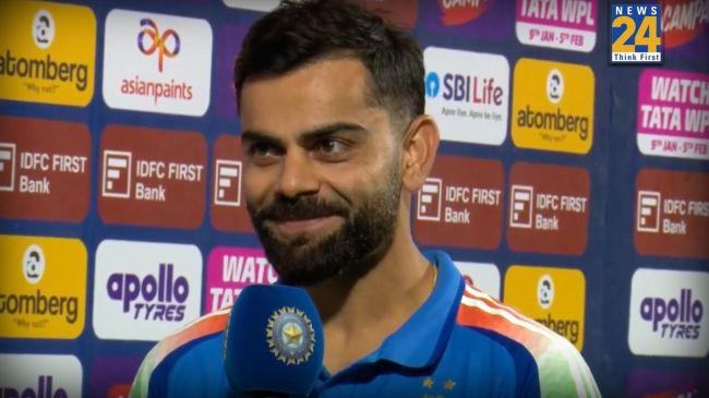 Virat Kohli: भारत और न्यूजीलैंड के बीच 3 मैचों की वनडे सीरीज का पहला मुकाबला 11 जनवरी को खेला गया था. भारत ने 4 विकेट से जीत हासिल करते हुए सीरीज में 1-0 की बढ़त बनाई. विराट कोहली ने इस मैच को अपने लिए यादगार बनाया. उन्होंने धांसू अर्धशतकीय पारी खेली. हालांकि वह शतक से चूक गए. इसके बाद भी रन मशीन ने अपने 28 हजार इंटरनेशनल रन पूरे कर लिए. विराट को प्लेयर ऑफ द मैच के खिताब से नवाजा गया. इसके बाद किंग कोहली ने बड़ा बयान दिया है.