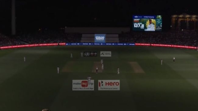 The lights went out twice in quick succession at Adelaide Oval, but play has resumed. #AUSvIND pic.twitter.com/u6Jtd39Utc