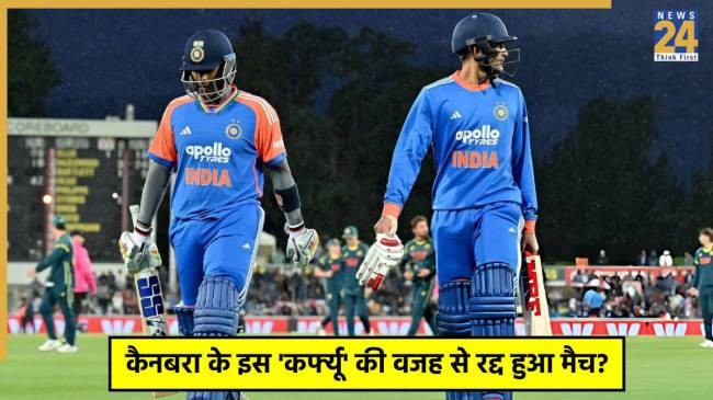 वहीं, मुकाबला 18-18 ओवर कर दिया गया. यानी मैच में 2-2 ओवर की कटौती कर दी गई है. आमतौर पर टी20 मुकाबलों में इतने कम देरी के लिए मैच रुकने पर ओवरों की कटौती नहीं होती है. दरअसल, इसके पीछे एक नियम है, जो कैनबरा के मैदान पर देखने को मिला है. ओवर इसलिए घटाने पड़े, क्योंकि मैदान पर फ्लडलाइट कर्फ्यू (Floodlight Curfew) का नियम लागू है. इस नियम के तहत रात 11:00 बजे तक स्टेडियम की लाइटें बंद करनी होती है, क्योंकि यह एक रिहायशी इलाका है. इसी कारण खेल को निर्धारित समय पर कम कर दिया गया और ओवरों में भी कटौती हुई. अधिक जानकारी के लिए वीडियो देखें.
