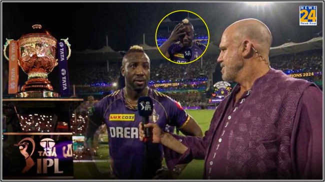 IPL 2024 Final KKR vs SRH: कोलकाता नाइट राइडर्स ने सनराइजर्स हैदराबाद के खिलाफ रविवार को चेन्नई में खेले गए आईपीएल 2024 के फाइनल मुकाबले में धमाकेदार जीत दर्ज की। केकेआर ने ये मैच 57 गेंद शेष रहते 8 विकेट से जीत लिया। इस मुकाबले में केकेआर के गेंदबाज आंद्रे रसेल ने शानदार प्रदर्शन करते हुए 2.3 ओवर में 19 रन देकर 3 विकेट चटकाए। उन्होंने एडेन मार्करम को 20, अब्दुल समद को 4 और पैट कमिंस को 24 रन पर पवेलियन भेजा। आंद्रे रसेल की शानदार गेंदबाजी के आगे सनराइजर्स की टीम 18.3 ओवर में 113 रन ही बना पाई। जिसे केकेआर ने 10.3 ओवर में ही जीत लिया। इस जीत के बाद आंद्रे रसेल बेहद भावुक हो गए। वह अपने आंसू नहीं रोक पाए।