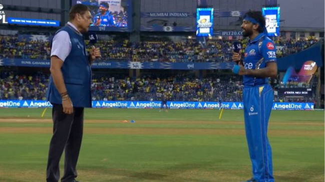 इस मैच के टॉस प्रेजेंटेटर रवि शास्त्री थे। टॉस जीतने के बाद जब हार्दिक बता रहे थे कि ऑस आने की पूरी संभावना है जिससे मैच के दूसरे हाफ में बल्लेबाजों को ज्यादा मदद मिल सकती है। इस पर रवि शास्त्री ने हार्दिक से पूछा कि क्या मुंबई पहले बल्लेबाजी करने वाली है तब हार्दिक ने बताया कि हम पहले गेंदबाजी करने वाले हैं। जिसका वीडियो भी सामने आया है जो सोशल मीडिया पर काफी तेजी से वायरल हो रहा है।