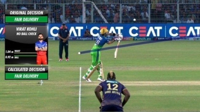 рд╕реНрдЯрд╛рд░ рд╕реНрдкреЛрд░реНрдЯреНрд╕ рдиреЗ рдЖрдЧреЗ рдХрд╣рд╛ рдХрд┐ рд╡рд┐рд░рд╛рдЯ рдХреЛрд╣рд▓реА рдХреЗ рдХреЗрд╕ рдореЗрдВ рдЬрдм рд╡рд┐рд░рд╛рдЯ рдиреЗ рдЧреЗрдВрдж рдХреЛ рд╣рд┐рдЯ рдХрд┐рдпрд╛, рдЗрд╕ рджреМрд░рд╛рди рддреЛ рдЧреЗрдВрдж рдХрдорд░ рд╕реЗ рдКрдкрд░ рдереА, рд▓реЗрдХрд┐рди рдЬрдм рдЧреЗрдВрдж рд╕реНрдЯреЗрдкрд┐рдВрдЧ рдХреНрд░реАрдЬ рдХреЛ рдкрд░ рдХрд░ рд░рд╣реА рдереА, рдЗрд╕ рджреМрд░рд╛рди рдЧреЗрдВрдж рдХрдорд░ рд╕реЗ рдиреАрдЪреЗ рдЖ рдЧрдИ рдереАред рд╕реНрдЯрд╛рд░ рд╕реНрдкреЛрд░реНрдЯреНрд╕ рдиреЗ рдПрдХ рдлреЛрдЯреЛ рдЧреНрд░рд╛рдлрд┐рдХреНрд╕ рдХреЗ рдорд╛рдзреНрдпрдо рд╕реЗ рд╕рдордЭрдиреЗ рдХреА рдХреЛрд╢рд┐рд╢ рдХреА рд╣реИред рдЗрд╕ рдЧреНрд░рд╛рдлрд┐рдХреНрд╕ рдореЗрдВ рджрд┐рдЦрд╛рдпрд╛ рдЧрдпрд╛ рд╣реИ рдХрд┐ рд╡рд┐рд░рд╛рдЯ рдХреА рдХрдорд░ рдХреА рд╣рд╛рдЗрдЯ 1.04 рдореАрдЯрд░ рд╣реИред рджреВрд╕рд░реА рдУрд░ рд╕реНрдЯреЗрдкрд┐рдВрдЧ рдХреНрд░реАрдЬ рдХреЗ рдкрд╛рд╕ рдЧреЗрдВрдж рдХреА рд╣рд╛рдЗрдЯ 0.92 рдореАрдЯрд░ рдереАред рдЗрд╕ рддрд░рд╣ рд╕реНрдЯрд╛рд░ рд╕реНрдкреЛрд░реНрдЯреНрд╕ рдиреЗ рднреА рд╣рд░реНрд╖рд┐рдд рд░рд╛рдгрд╛ рдХреА рдЗрд╕ рдЧреЗрдВрдж рдХреЛ рдлреЗрдпрд░ рдмреЙрд▓ рдмрддрд╛ рджрд┐рдпрд╛ рдФрд░ рдХреЛрд╣рд▓реА рдХреЛ рдЖрдЙрдЯ рдХрд░рд╛рд░ рджреЗ рджрд┐рдпрд╛ рд╣реИред