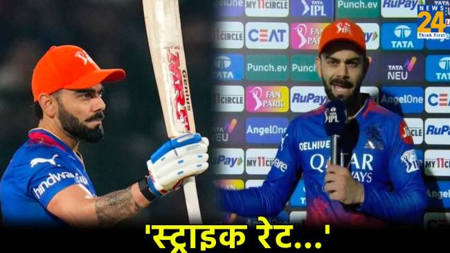 Virat Kohli Statement on Strike Rate: आईपीएल 2024 का 58वां मुकाबला बेहद ही रोमांचक रहा। यह मैच पंजाब किंग्स और रॉयल चैलेंजर्स बेंगलुरु के बीच खेला गया। आरसीबी ने इस मैच को अपने नाम कर प्लेऑफ में पहुंचने की उम्मीद को बरकरार रखा है। दूसरी ओर पंजाब किंग्स को इस सीजन की 8वीं हार मिली और इसके साथ ही वह प्लेऑफ की रेस से बाहर हो गई है। बेंगलुरु की ओर से दिग्गज बल्लेबाज विराट कोहली ने आज फिर आतिशी पारी खेली है।