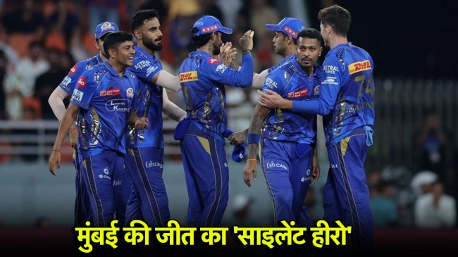 IPL 2025 GT vs MI: मुंबई इंडियंस एलिमिनेटर मैच में गुजरात टाइटंस को हराकर क्वालीफयर 2 में पहुंच गई है। इस मैच में मुंबई इंडियंस की बल्लेबाजी काफी शानदार रही लेकिन गेंदबाजी में टीम थोड़ा संघर्ष करती दिखी थी। बल्लेबाजी में पूर्व कप्तान रोहित शर्मा ने मोर्चा संभाला था और 81 रन की ताबड़तोड़ पारी खेली थी। इसके अलावा गेंदबाजी में जसप्रीत बुमराह सबसे किफायती गेंदबाज रहे, जिन्होंने 4 ओवर में महज 27 रन देकर वाशिंगटन सुंदर की अहम विकेट अपने नाम की थी। इन दोनों के अलावा मुंबई इंडियंस की जीत का साइलेंट हीरो एक अनकैप्ड खिलाड़ी निकला, जिसमें जीत में अहम भूमिका निभाई।