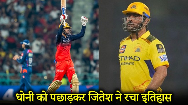 IPL 2025 LSG vs RCB: आरसीबी ने अपने आखिरी लीग मैच में लखनऊ सुपर जायंट्स को हराकर टॉप-2 में अपनी जगह पक्की की। इसके साथ ही आरसीबी क्वालीफायर 1 में पंजाब किंग्स के साथ खेलेगी। आरसीबी ने 9 साल के बाद क्वालीफायर 1 में जगह बनाई है। इस मैच में आरसीबी के कप्तानी कर रहे विकेटकीपर बल्लेबाज जितेश शर्मा ने कमाल की बल्लेबाजी करते हुए आरसीबी की जीत में अहम भूमिका निभाई। इस मैच में जितेश शर्मा ने एमएस धोनी को पछाड़कर इतिहास रच दिया है।