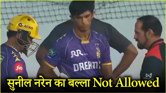 Sunil Narine IPL 2025: आईपीएल 2025 में शनिवार को रोमांचक मुकाबले में पंजाब किंग्स ने कोलकाता नाइट राइडर्स (KKR) को 16 रनों से मात दी। इस मैच में एक ऐसा वाकया देखने को मिला, जिसने सभी का ध्यान खींचा है। दरअसल, चंडीगढ़ के मुल्लांपुर में खेले गए इस मैच में जब केकेआर के सलामी बल्लेबाज सुनील नरेन और क्विंटन डिकॉक बैटिंग करने के लिए आए, तो अंपायर ने मैच को रोककर नरेन का बल्ला चेक किया। हैरानी वाली बात यह है कि इस दौरान उनका बल्ला अवैध पाया गया।