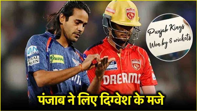 उन्होंने इसके बाद प्रियांश को चिढ़ाया, जो चर्चा का विषय बन गया। मैच खत्म होने के बाद अब पंजाब की टीम ने दिग्वेश को जवाब दिया है। पंजाब किंग्स ने दिग्वेश के सेलिब्रेशन की एक तस्वीर शेयर की है, जिसके कैप्शन में लिखा है, ‘पंजाब किंग्स ने आठ विकेट से जीता मैच।’