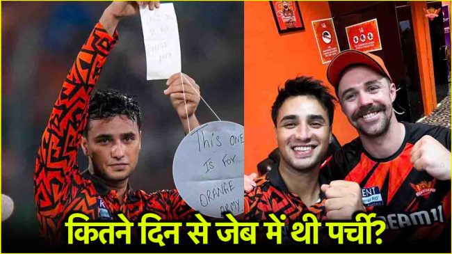 IPL 2025 SRH vs PBKS: рдкрдВрдЬрд╛рдм рдХрд┐рдВрдЧреНрд╕ рдХреЗ рдЦрд┐рд▓рд╛рдл рд╕рдирд░рд╛рдЗрдЬрд░реНрд╕ рд╣реИрджрд░рд╛рдмрд╛рдж рдХреЗ рд╕рд▓рд╛рдореА рдмрд▓реНрд▓реЗрдмрд╛рдЬ рдЕрднрд┐рд╖реЗрдХ рд╢рд░реНрдорд╛ рдиреЗ рдЕрдкрдиреЗ рдЖрдИрдкреАрдПрд▓ рдЗрддрд┐рд╣рд╛рд╕ рдХрд╛ рдкрд╣рд▓рд╛ рд╢рддрдХ рд▓рдЧрд╛рдпрд╛ред рдпреЗ рд╢рддрдХ рдорд╣рдЬ 40 рдЧреЗрдВрдж рдореЗрдВ рдЖрдпрд╛ред рдЗрд╕ рд╢рддрдХ рдХреЛ рд▓рдЧрд╛рдиреЗ рдХреЗ рдмрд╛рдж рдЕрднрд┐рд╖реЗрдХ рдиреЗ рдЦрд╛рд╕ рдЕрдВрджрд╛рдЬ рдореЗрдВ рд╕реЗрд▓рд┐рдмреНрд░реЗрд╢рди рдХрд┐рдпрд╛, рдЙрдиреНрд╣реЛрдВрдиреЗ рдЕрдкрдиреА рдЬреЗрдм рд╕реЗ рдПрдХ рдкрд░реНрдЪреА рдирд┐рдХрд╛рд▓реА рдереА рдЬрд┐рд╕ рдкрд░ рдСрд░реЗрдВрдЬ рдЖрд░реНрдореА рдХреЗ рд▓рд┐рдП рдПрдХ рдЦрд╛рд╕ рд╕рдВрджреЗрд╢ рд▓рд┐рдЦрд╛ рдерд╛ред рд╡рд╣реАрдВ рдореИрдЪ рдХреЗ рдмрд╛рдж рдЕрднрд┐рд╖реЗрдХ рдХреЗ рдЬреЛрдбрд╝реАрджрд╛рд░ рдЯреНрд░реИрд╡рд┐рд╕ рд╣реЗрдб рдиреЗ рдЦреБрд▓рд╛рд╕рд╛ рдХрд░рддреЗ рд╣реБрдП рдмрддрд╛рдпрд╛ рдХрд┐ рдЖрдЦрд┐рд░ рдХрд┐рддрдиреЗ рджрд┐рди рд╕реЗ рдЕрднрд┐рд╖реЗрдХ рдЙрд╕ рдкрд░реНрдЪреА рдХреЛ рдЕрдкрдиреА рдкреЙрдХреЗрдЯ рдореЗрдВ рдбрд╛рд▓рдХрд░ рдЦреЗрд▓ рд░рд╣реЗ рдереЗ?
