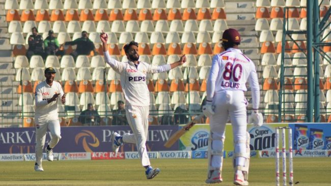 рдкрд╛рдХрд┐рд╕реНрддрд╛рди рдмрдирд╛рдо рд╡реЗрд╕реНрдЯрдЗрдВрдбреАрдЬ рдХреЗ рдмреАрдЪ рдЦреЗрд▓реЗ рдЬрд╛ рд░рд╣реЗ рдореБрдХрд╛рдмрд▓реЗ рдореЗрдВ рдкрд╣рд▓рд╛ рджрд┐рди рджреЛрдиреЛрдВ рдЯреАрдореЛрдВ рдХреЗ рдЧреЗрдВрджрдмрд╛рдЬреЛрдВ рдиреЗ рдЕрдкрдиреЗ рдирд╛рдо рдХрд┐рдпрд╛ред рдкрд╣рд▓реЗ рд╣реА рджрд┐рди 20 рд╡рд┐рдХреЗрдЯ рдЧрд┐рд░ рдЧрдПред рдЗрд╕ рдореИрдЪ рдореЗрдВ рдкрд╣рд▓реЗ рдмрд▓реНрд▓реЗрдмрд╛рдЬреА рдХрд░рддреЗ рд╣реБрдП рд╡реЗрд╕реНрдЯрдЗрдВрдбреАрдЬ рдиреЗ 41.1 рдУрд╡рд░ рдореЗрдВ 163/10 рд░рди рдмрдирд╛рдП рдереЗред рдкрд╛рдХрд┐рд╕реНрддрд╛рди рдХреА рдУрд░ рд╕реЗ рдиреЛрдорд╛рди рдЕрд▓реА рдиреЗ 6 рд╡рд┐рдХреЗрдЯ рд▓рд┐рдП рдереЗред рд╕рд╛рде рд╣реА рдЗрд╕ рдЦрд┐рд▓рд╛рдбрд╝реА рдиреЗ рд╣реИрдЯреНрд░рд┐рдХ рд╡рд┐рдХреЗрдЯ рднреА рд▓рд┐рдпрд╛ рдерд╛ред рд╡рд╣реАрдВ рдкрд╛рдХрд┐рд╕реНрддрд╛рди рднреА рдЕрдкрдиреА рдкрд╣рд▓реА рдкрд╛рд░реА рдореЗрдВ 154 рд░рдиреЛрдВ рдкрд░ рд╣реА рд╕рд┐рдордЯ рдЧрдИред рдЯреАрдо рдХрд╛ рдХреЛрдИ рднреА рдореБрдЦреНрдп рдмрд▓реНрд▓реЗрдмрд╛рдЬ рдЕрд░реНрдзрд╢рддрдХ рдирд╣реАрдВ рдмрдирд╛ рдкрд╛рдпрд╛ред рдкрд╣рд▓реЗ рджрд┐рди рдХрд╛ рдЦреЗрд▓ рдЦрддреНрдо рд╣реЛрдиреЗ рддрдХ рдкрд╛рдХрд┐рд╕реНрддрд╛рди 9 рд░рдиреЛрдВ рд╕реЗ рдкреАрдЫреЗ рд╣реЛ рдЧрдИ рд╣реИред