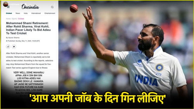 मोहम्मद शमी ने अपने रिटायरमेंट को लेकर छपी न्यूज का स्क्रीनशॉट शेयर करते हुए लिखा, “बहुत बढ़िया, शाबाश महाराज। अपनी जॉब के भी दिन गिन लो कितने बचे हुए हैं। बाद में हमारा देख लें। आप जैसे लोगों ने ही हमारा सत्यानाश कर रखा है। भविष्य को लेकर कभी तो अच्छा बोल लिया करें। आज की सबसे खराब स्टोरी। सॉरी।” मोहम्मद शमी ने भारतीय टीम के लिए अपना आखिरी टेस्ट मैच साल 2023 में खेला था। इस टेस्ट मैच के बाद से शमी टीम इंडिया की से बाहर चल रहे हैं।