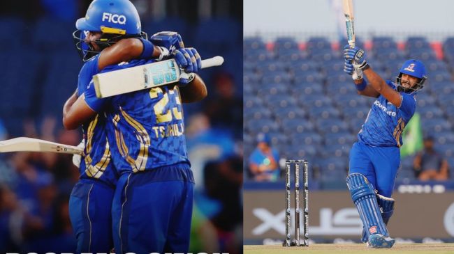 рдПрдордЖрдИ рдиреНрдпреВрдпреЙрд░реНрдХ рдХреА рддрд░рдл рд╕реЗ рдХрдкреНрддрд╛рди рдирд┐рдХреЛрд▓рд╕ рдкреВрд░рди рдФрд░ рддрдЬрд┐рдВрджрд░ рдврд┐рд▓реНрд▓реЛрдВ рдиреЗ рдХрдорд╛рд▓ рдХреА рдмрд▓реНрд▓реЗрдмрд╛рдЬреА рдХрд╛ рдирдЬрд╛рд░рд╛ рдкреЗрд╢ рдХрд┐рдпрд╛ред рдЗрддрдирд╛ рд╣реА рдирд╣реАрдВ рджреЛрдиреЛрдВ рдХреЗ рдмреАрдЪ рдореЗрдЬрд░ рд▓реАрдЧ рдХреНрд░рд┐рдХреЗрдЯ рдХреЗ рдЗрддрд┐рд╣рд╛рд╕ рдХреА рд╕рдмрд╕реЗ рдмрдбрд╝реА рд╕рд╛рдЭреЗрджрд╛рд░реА рднреА рджреЗрдЦрдиреЗ рдХреЛ рдорд┐рд▓реАред рджреЛрдиреЛрдВ рдмрд▓реНрд▓реЗрдмрд╛рдЬреЛрдВ рдХреЗ рдмреАрдЪ 68 рдЧреЗрдВрджреЛрдВ рдкрд░ 158 рд░рдиреЛрдВ рдХреА рд╕рд╛рдЭреЗрджрд╛рд░реА рд╣реБрдИ рдереАред рдЗрд╕рдХреЗ рдмрд╛рдж рддрдЬрд┐рдВрджрд░ 95 рд░рди рдмрдирд╛рдХрд░ рдЖрдЙрдЯ рд╣реЛ рдЧрдП рдереЗред