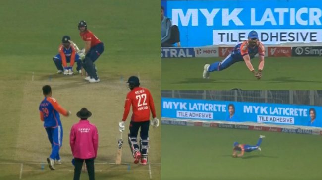 рдЗрд╕ рдореИрдЪ рдореЗрдВ рднрд╛рд░рддреАрдп рдХрдкреНрддрд╛рди рд╕реВрд░реНрдпрдХреБрдорд╛рд░ рдпрд╛рджрд╡ рдиреЗ рдЯреЙрд╕ рдЬреАрддрд╛ рдФрд░ рдкрд╣рд▓реЗ рдЧреЗрдВрджрдмрд╛рдЬреА рдХрд░рдиреЗ рдХрд╛ рдлреИрд╕рд▓рд╛ рдХрд┐рдпрд╛ред рд╕реВрд░реНрдпрд╛ рдХрд╛ рдпреЗ рдлреИрд╕рд▓рд╛ рд╕рд╣реА рднреА рд╕рд╛рдмрд┐рдд рд╣реБрдЖред рдХреНрдпреЛрдВрдХрд┐ рднрд╛рд░рддреАрдп рдХрдкреНрддрд╛рди рдиреЗ рдЗрдВрдЧреНрд▓реИрдВрдб рдХреЛ 132 рд░рдиреЛрдВ рдкрд░ рд╣реА рд╕рдореЗрдЯ рджрд┐рдпрд╛ред 17рд╡реЗрдВ рдУрд╡рд░ рдореЗрдВ рдирд┐рддреАрд╢ рдХреБрдорд╛рд░ рд░реЗрдбреНрдбреА рдХрд╛ рдХреИрдЪ рдЪрд░реНрдЪрд╛ рдХрд╛ рд╡рд┐рд╖рдп рд░рд╣рд╛ред рдЙрдиреНрд╣реЛрдВрдиреЗ рдЗрдВрдЧреНрд▓реИрдВрдб рдХреЗ рдХрдкреНрддрд╛рди рдЬреЛрд╕ рдмрдЯрд▓рд░ рдХрд╛ рджрдорджрд╛рд░ рдХреИрдЪ рдкрдХрдбрд╝рд╛ред рджрд░рдЕрд╕рд▓ рднрд╛рд░рдд рдХреА рдУрд░ рд╕реЗ 17рд╡рд╛рдВ рдУрд╡рд░ рдХрд░рдиреЗ рдЖрдП рд╡рд░реБрдг рдЪрдХреНрд░рд╡рд░реНрддреА рдиреЗ рдмрдЯрд▓рд░ рдХреЛ рддреЗрдЬ рдЧрддрд┐ рд╕реЗ рдЧреЗрдВрдж рдбрд╛рд▓реА рдФрд░ рдЗрдВрдЧреНрд▓реИрдВрдб рдХреЗ рдХрдкреНрддрд╛рди рдиреЗ рдЗрд╕ рдЧреЗрдВрдж рдкрд░ рдмрдбрд╝рд╛ рд╢реЙрдЯ рдорд╛рд░рдиреЗ рдХрд╛ рдкреНрд░рдпрд╛рд╕ рдХрд┐рдпрд╛ред рдЗрд╕рдХреЗ рдмрд╛рдж рдмрд╛рдЙрдВрдбреНрд░реА рд▓рд╛рдЗрди рдкрд░ рдлреАрд▓реНрдбрд┐рдВрдЧ рдХрд░ рд░рд╣реЗ рдирд┐рддреАрд╢ рд░реЗрдбреНрдбреА рдиреЗ рд╣рд╡рд╛ рдореЗрдВ рдЙрдбрд╝рдХрд░ рдЬрдмрд░рджрд╕реНрдд рдХреИрдЪ рдкрдХрдбрд╝ рд▓рд┐рдпрд╛, рдЬрд┐рд╕рдХрд╛ рд╡реАрдбрд┐рдпреЛ рд╕реЛрд╢рд▓ рдореАрдбрд┐рдпрд╛ рдкрд░ рд╡рд╛рдпрд░рд▓ рд╣реЛ рд░рд╣рд╛ рд╣реИред