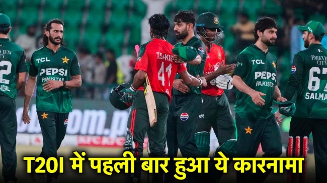 Pakistan vs Bangladesh 2nd T20I: बांग्लादेश की टीम इन दिनों पाकिस्तान के दौरे पर है। जहां दोनों टीमों के बीच 3 मैचों की टी20 सीरीज खेली जा रही है। सीरीज का दूसरा मैच 30 मई को लाहौर के गद्दाफी स्टेडियम में खेला गया। इस मैच को 57 रन से जीतकर पाकिस्तान ने सीरीज में भी 2-0 की अजेय बढ़त हासिल कर ली है। वहीं इस मैच में बांग्लादेश के 9वें नंबर के बल्लेबाज तंजीम हसन साकिब ने टी20 इंटरनेशनल में इतिहास रच दिया।