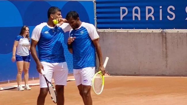 рдкреЗрд░рд┐рд╕ рдУрд▓рдВрдкрд┐рдХ-2024 рдХреА рдЯреЗрдирд┐рд╕ рдбрдмрд▓реНрд╕ рдХреА рд╕реНрдкрд░реНрдзрд╛ рдореЗрдВ рднрд╛рд░рдд рдХрд╛ рдкреНрд░рддрд┐рдирд┐рдзрд┐рддреНрд╡ рдХрд░ рд░рд╣реЗ рд░реЛрд╣рди рдмреЛрдкрдиреНрдирд╛ рдФрд░ рдмрд╛рд▓рд╛рдЬреА рдХрд╛ рд╕рд╛рдордирд╛ реЮреНрд░рд╛рдВрд╕ рдХреЗ рдПрдбрд╡рд░реНрдб рд░реЛрдЬрд░ рдФрд░ рдЧреЗрд▓ рдореЛрдирдлрд┐рд▓реНрд╕ рдХреА рдЬреЛреЬреА рд╕реЗ рд╣реБрдЖ рдерд╛ред рдЗрд╕ рдореИрдЪ рдореЗрдВ рднрд╛рд░рддреАрдп рдЬреЛреЬреА рдХреЛ рд╕реАрдзреЗ рд╕реЗрдЯреЛрдВ рдореЗрдВ рд╣рд╛рд░ рдХреЗ рд╕рд╛рде рдмрд╛рд╣рд░ рд╣реЛрдирд╛ рдкреЬрд╛ рдерд╛ред рдлреНрд░рд╛рдВрд╕ рдХреА рдЗрд╕ рдЬреЛрдбрд╝реА рдиреЗ рд░реЛрд╣рди рдмреЛрдкрдиреНрдирд╛ рдФрд░ рдмрд╛рд▓рд╛рдЬреА рдХреА рдЬреЛрдбрд╝реА рдХреЛ 5-7, 6-2 рдХреЗ рдЕрдВрддрд░ рд╕реЗ рд╣рд░рд╛рдХрд░ рдЯреВрд░реНрдирд╛рдореЗрдВрдЯ рд╕реЗ рдмрд╛рд╣рд░ рдХрд┐рдпрд╛ред