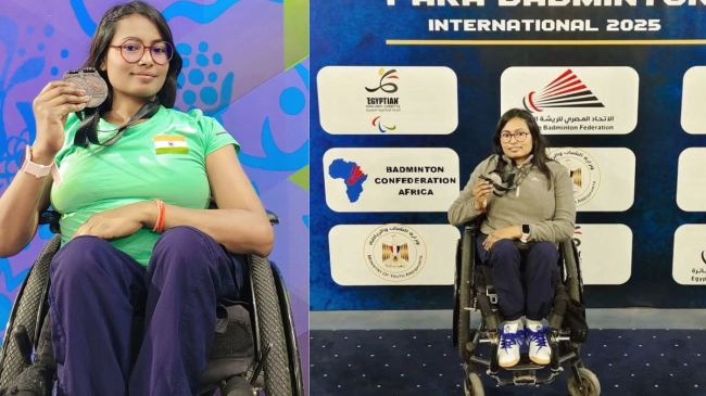Egypt Championship 2025: भारतीय पैरा-बैडमिंटन खिलाड़ी प्रेमा विश्वास ने 21 से 26 जनवरी तक काइरो, इजिप्ट में आयोजित 2025 मिस्र पैरा-बैडमिंटन अंतर्राष्ट्रीय चैंपियनशिप में दो कांस्य पदक जीते। महिला सिंगल्स वर्ग (W-1) श्रेणी में, उन्होंने केन्या की खिलाड़ी नगोजी को 21-2, 21-4 के स्कोर से हराया। इसके अलावा, महिला डबल (W-1/W-2) में M Antunes ANZIOKI के साथ मिलकर P VISHWAS, SHABABA को 21-4, 21-11 से हराकर एक और कांस्य पदक हासिल किया। यह पैरा-एशियाई खेलों की चयन रैंकिंग का हिस्सा था। इस टूर्नामेंट में दुनिया भर के शीर्ष खिलाड़ियों ने भाग लिया था।
